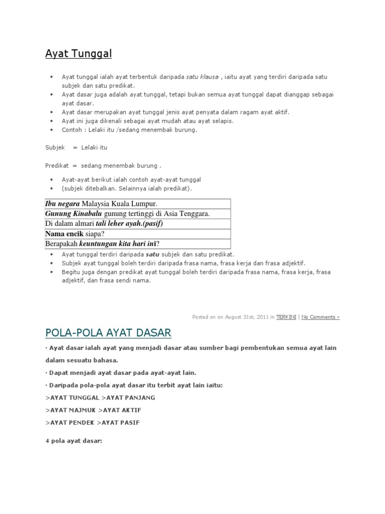 Contoh Ayat Pasif Dan Ayat Tunggal